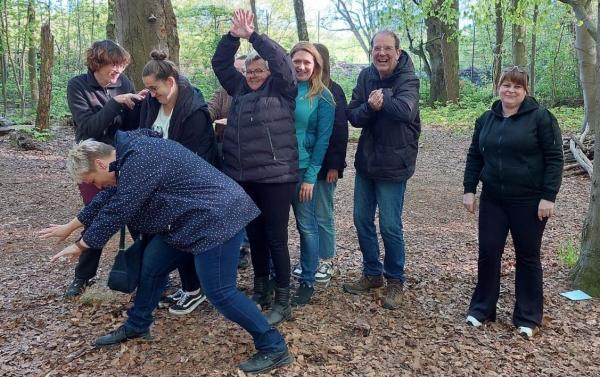 Viel Spaß hatten die Teilnehmerinnen und Teilnehmer bei der Fortbildung "Theater im Wald". Was zunächst vielleicht etwas exotisch anmutet, stellte sich als wunderbare Methode heraus, sich mit Waldthemen anzufreunden. Dabei ist der Zugang über die eigene Erfahrungs- und Vorstellungswelt elementar und kann gerade mit Kindern vertieft werden.
